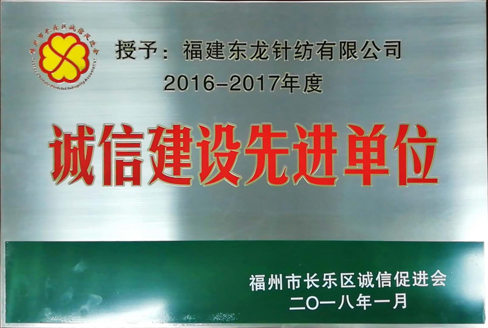 長樂區誠信建設先進單位/2018-09-04